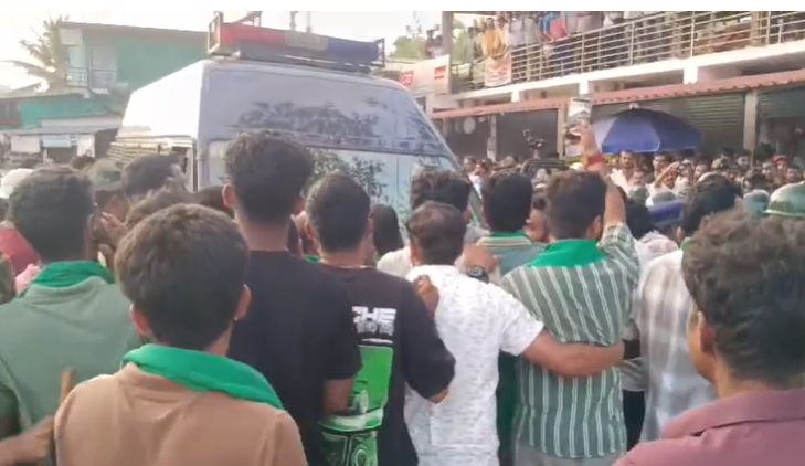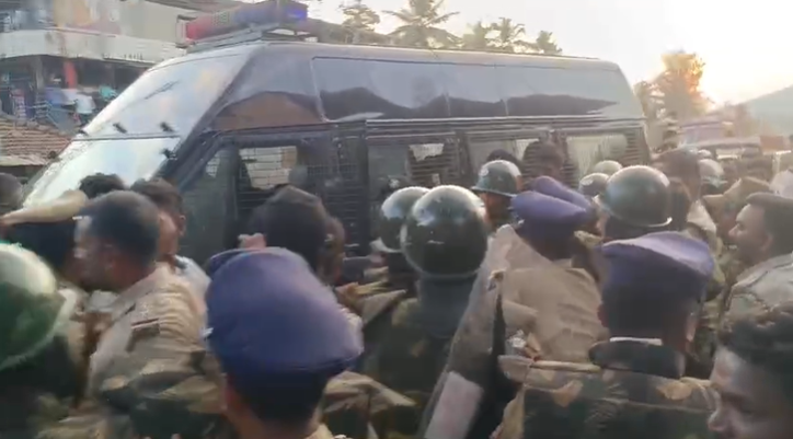 ಪ್ರತಿಭಟನಾಕಾರರನ್ನು ಚದುರಿಸಲು ಪೊಲೀಸರು ಮುಂದಾದಾಗ ಹೇ.... ಕೊಡ್ತೀನಿ ನೋಡು... ನಡಿಯೋ ನೀನು... ಬಂಧಿತ ವ್ಯಕ್ತಿಯನ್ನು ಬಿಡಿಸಲು ಹೋದ ಪ್ರವೀಣ್ ಖಾಂಡ್ಯ ಮತ್ತು ಪೊಲೀಸರ ನಡುವೆ ತೀವ್ರ ಮಾತಿನ ಚಕಮಕಿ ನಡೆದಿದೆ. ನೂರಾರು ಜನರು ಪೊಲೀಸರ ವಿರುದ್ಧ ಘೋಷಣೆ ಕೂಗುತ್ತಾ ಆಕ್ರೋಶ ಹೊರಹಾಕಿದ್ದು, ಸ್ಥಳದಲ್ಲಿ ಬಿಗುವಿನ ವಾತಾವರಣ ನಿರ್ಮಾಣವಾಗಿದೆ.