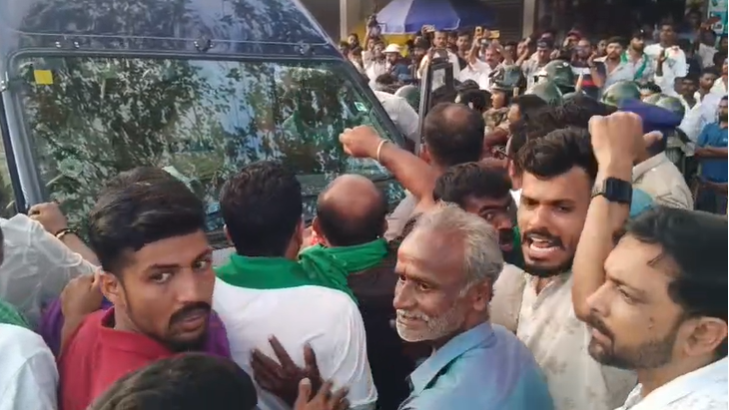 ಪೊಲೀಸರು ಪ್ರತಿಭಟನಾಕಾರರ ನಡುವೆ ನೂಕಾಟ-ತಳ್ಳಾಟ