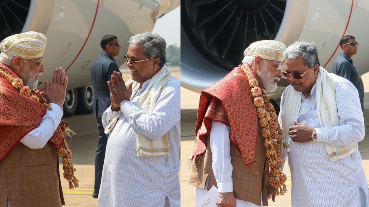 ಬೆಂಗಳೂರು (ಏ.16): ರಾಜ್ಯಕ್ಕೆ ಬುಧವಾರ ಆಗಮಿಸಿದ್ದ ಪ್ರಧಾನಿ ನರೇಂದ್ರ ಮೋದಿ ಅವರನ್ನು ಆತ್ಮೀಯವಾಗಿ ಸ್ವಾಗತಿಸಿದ ಮುಖ್ಯಮಂತ್ರಿ ಸಿದ್ದರಾಮಯ್ಯ ಅವರು, ರಾಜ್ಯದ ವಿವಿಧ ರೈಲ್ವೆ, ನೀರಾವರಿ, ರಸ್ತೆ ಯೋಜನೆಗಳ ಮಂಜೂರಾತಿ ಹಾಗೂ ಅನುದಾನ ಬಿಡುಗಡೆ, ಜಲಜೀವನ್ ಮಿಷನ್ನ ಬಾಕಿ ಮೊತ್ತ ಬಿಡುಗಡೆ, ಬೆಂಗಳೂರು ಅಭಿವೃದ್ಧಿಗೆ ವಿಶೇಷ ಅನುದಾನ, ಹಣಕಾಸು ಆಯೋಗದ ಶಿಫಾರಸಿನಂತೆ ರಾಜ್ಯಕ್ಕೆ ವಿಶೇಷ ಅನುದಾನ ನೀಡಿಕೆ ಸೇರಿದಂತೆ ಒಟ್ಟು 18 ಬೇಡಿಕೆಗಳ ಮನವಿ ಪತ್ರ ಸಲ್ಲಿಸಿದರು.