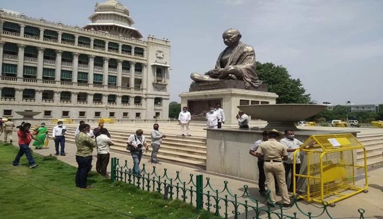 ವಿಧಾನಸೌಧದ ಮುಂಭಾಗ ಗಾಂಧಿ ಪ್ರತಿಮೆ ಬಳಿ ಸರ್ಕಾರದ ವಿರುದ್ಧ ಪ್ರತಿಭಟನೆ ನಡೆಸಲು ಕಾಂಗ್ರೆಸ್ ಶಾಸಕರು ಮುಂದಾಗಿದ್ದರು. ಆದರೆ, ಭದ್ರತಾ ದೃಷ್ಟಿಯಿಂದ ಗಾಂಧಿ ಪ್ರತಿಮೆ ಬಳಿ ಪ್ರತಿಭಟನೆ ಮಾಡದಂತೆ ಪೊಲೀಸರು ಸೂಚನೆ ನೀಡಿದ್ದಾರೆ. ಈ ಸಂಬಂಧ ಬ್ಯಾರಿಕೇಡ್ಗಳಿಗೆ ಪೊಲೀಸರು ಸೂಚನಾ ಪತ್ರವನ್ನ ಅಂಟಿಸಿದ್ದಾರೆ.
