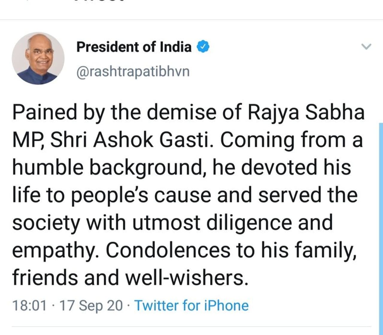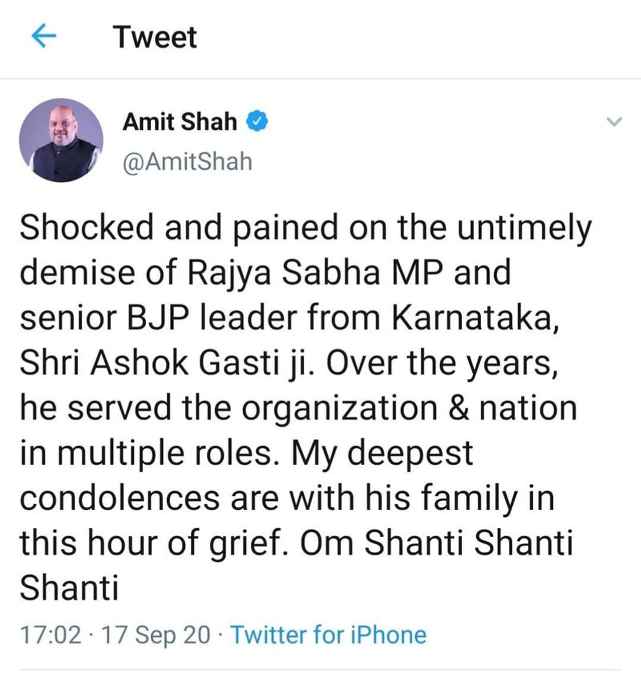 ಹೌದು ಕೊರೋನಾ ಸೋಂಕಿನಿಂದಾಗಿ ಕಳೆದ ಹದಿನೈದು ದಿನಗಳ ಹಿಂದೆ ನಗರದ ಮಣಿಪಾಲ್ ಆಸ್ಪತ್ರೆಗೆ ದಾಖಲಾಗಿ ಚಿಕಿತ್ಸೆ ಪಡೆಯುತ್ತಿದ್ದ ಗಸ್ತಿಯವರ ನಿಧನದ ಸುದ್ದಿ ಎಲ್ಲರನ್ನೂ ಬೆಚ್ಚಿ ಬೀಳಿಸಿತ್ತು. ಮಾಧ್ಯಮಗಳಲ್ಲೂ ಈ ಸುದ್ದಿ ಹರಿದಾಡಿತ್ತು. ಇದರ ಬೆನ್ನಲ್ಲೇ ಕರ್ನಾಟಕ ಬಿಜೆಪಿ ಅಧಿಕೃತ ಟ್ವಿಟರ್ ಖಾತೆಯಿಂದ ಈ ಸಂಬಂಧ ಟ್ವೀಟ್ ಮಾಡಲಾಗಿದ್ದು, ರಾಜ್ಯ ಸಭಾ ಸದಸ್ಯರಾದ ಶ್ರೀ ಅಶೋಕ್ ಗಸ್ತಿ ಅವರ ಆರೋಗ್ಯ ಕುರಿತು ಕೆಲವು ವರದಿಗಳು ಪ್ರಸಾರವಾಗುತ್ತಿದೆ. ಅವರು ಆಸ್ಪತ್ರೆಯಲ್ಲಿ ಚಿಕಿತ್ಸೆ ಪಡೆಯುತ್ತಿದ್ದು ಅವರ ಸ್ಥಿತಿ ಗಂಭೀರವಾಗಿದ್ದು, ಅವರು ಮರುಜನ್ಮ ಪಡೆದು ಆರೋಗ್ಯವಂತರಾಗಲಿ ಎಂದು ಭಗವಂತನಲ್ಲಿ ಪ್ರಾರ್ಥಿಸೋಣ ಎಂದು ಬರೆಯಲಾಗಿದೆ.