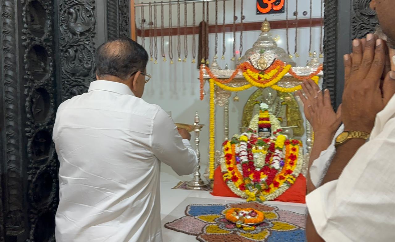 ತುಮಕೂರು (ಮಾ.14): ತುಮಕೂರಿನ ಸುಪ್ರಸಿದ್ಧ ಸಿದ್ಧಗಂಗಾ ಮಠಕ್ಕೆ ಇಂದು ಬೆಳ್ಳಂಬೆಳಗ್ಗೆ ಗೃಹ ಸಚಿವ ಡಾ. ಜಿ. ಪರಮೇಶ್ವರ್ ಭೇಟಿ ನೀಡಿದರು. ನಡೆದಾಡುವ ದೇವರು ಲಿಂಗೈಕ್ಯ ಶ್ರೀ ಶಿವಕುಮಾರ ಸ್ವಾಮೀಜಿಗಳ ಗದ್ದುಗೆಗೆ ವಿಶೇಷ ಪೂಜೆ ಸಲ್ಲಿಸಿದ ಸಚಿವರು, ಬಳಿಕ ಮಠದ ಅಧ್ಯಕ್ಷರಾದ ಶ್ರೀ ಸಿದ್ಧಲಿಂಗ ಸ್ವಾಮೀಜಿಗಳನ್ನು ಭೇಟಿಯಾಗಿ ಆಶೀರ್ವಾದ ಪಡೆದರು. ಈ ಸಂದರ್ಭದಲ್ಲಿ ಜಿಲ್ಲಾಧಿಕಾರಿ ಶುಭಕಲ್ಯಾಣ್ ಹಾಗೂ ಎಸ್.ಪಿ ಅಶೋಕ್ ಕೆ.ವಿ ಸಚಿವರಿಗೆ ಸಾಥ್ ನೀಡಿದರು.