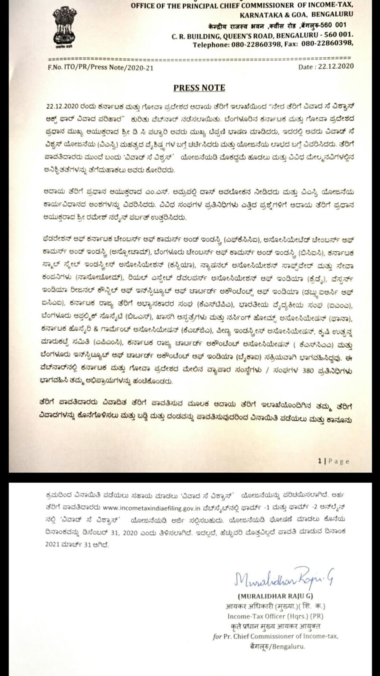 ಬಾಕಿ ಉಳಿಸಿಕೊಂಡಿರುವ ಆದಾಯ ತೆರಿಗೆಗೆ ಯಾವುದೇ ವಿವಾದ ವಿಲ್ಲದೆ ಇತ್ಯರ್ಥ ಮಾಡಿಕೊಳ್ಳಬಹುದಾಗಿದೆ. ಎಷ್ಟೇ ವರ್ಷಗಳು ಬಾಕಿ ಮೊತ್ತವಿದ್ದರೂ ಆದಾಯ ತೆರಿಗೆ ಇಲಾಖೆಗೆ ಪಾವತಿಸುವಂತೆ ವಿನಾಯಿತಿ ನೀಡಲಾಗಿದೆ. ಬಾಕಿ ಪಾವತಿಸುವವರ ವಿರುದ್ಧ ಯಾವುದೇ ದೂರು ದಾಖಲಿಸುವುದಿಲ್ಲ ಎಂದು ಗೋವಾ ಹಾಗೂ ಕರ್ನಾಟಕ ಮುಖ್ಯ ಆಯುಕ್ತ ಡಿಸಿ ಪಟ್ಟಾರಿ ಅವರು ಮಹತ್ವದ ಆದೇಶ ಹೊರಡಿಸಿದ್ದಾರೆ.