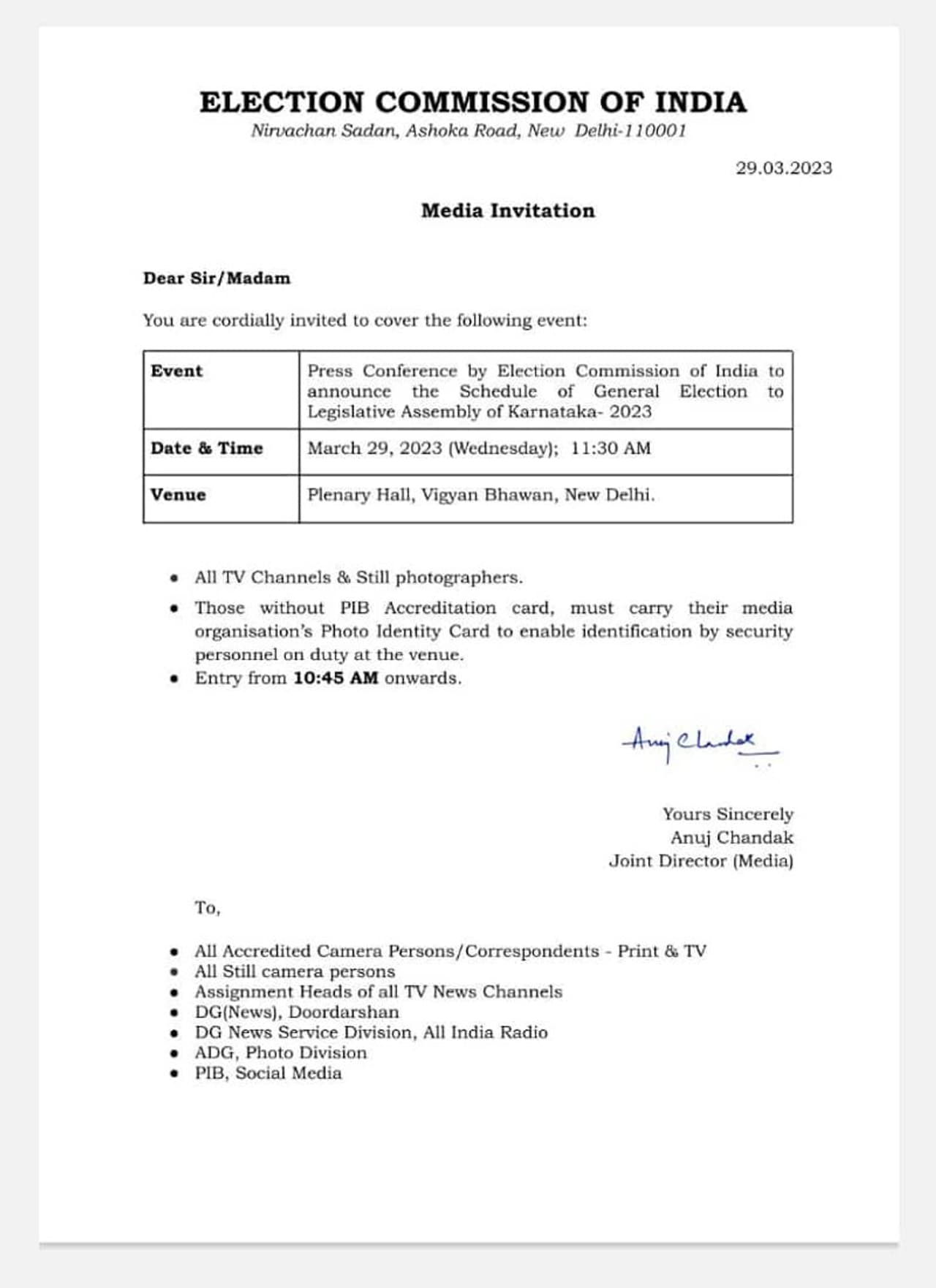 ಈ ಮೊದಲು, ಮಂಗಳವಾರ (ಮಾರ್ಚ್ 28) ಚುನಾವಣಾ ದಿನಾಂಕ ಘೋಷಣೆಯಾಗಬಹುದು ಎಂದು ನಿರೀಕ್ಷಿಸಲಾಗಿತ್ತು. ಆದರೆ, ಘೋಷಣೆಯಾಗಿಲ್ಲ. ಹೀಗಾಗಿ, ಏಪ್ರಿಲ್ ಮೊದಲ ವಾರ ಅಂದರೆ, ಏಪ್ರಿಲ್ 3 ಅಥವಾ 4ರಂದು ಚುನಾವಣಾ ದಿನಾಂಕ ಘೋಷಣೆಯಾಗುವ ಸಾಧ್ಯತೆ ಇದೆ ಎಂದು ಮೂಲಗಳು ತಿಳಿಸಿದ್ದವು. ಈ ಮಧ್ಯೆ, ಏಪ್ರಿಲ್ 4ರಂದು ಮಹಾವೀರ ಜಯಂತಿ ಇದ್ದು, ಅಂದು ಸಾರ್ವತ್ರಿಕ ರಜಾ ದಿನವಾಗಿದೆ ಎಂದು ಹೇಳಲಾಗಿತ್ತು. ಆದರೆ, ಇಂದೇ ಚುನಾವಣಾ ಆಯೋಗ ಸುದ್ದಿಗೋಷ್ಠಿ ನಡೆಸಲಿದ್ದು, ರಾಜ್ಯ ವಿಧಾನಸಭೆ ಚುನಾವಣೆಗೆ ದಿನಾಂಕ ಪ್ರಕಟ ಆಗಲಿದೆ.