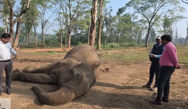 ದುಬಾರೆ ಶಿಬಿರದಲ್ಲಿ ಕಳೆದ 10 ದಿನಗಳಿಂದ ಚಿಕಿತ್ಸೆ ಪಡೆಯುತ್ತಿದ್ದ ತಕ್ಷ ಹೆಸರಿನ ಆನೆ ಸಾವು , ಕಳೆದ ವರ್ಷ ರಾಮನಗರದಲ್ಲಿ ಸೆರೆ ಹಿಡಿದ್ದ ಆನೆಯನ್ನು ದುಬಾರಿ ಶಿಬಿರದಲ್ಲಿ ಪಳಗಿಸಲಾಗಿತ್ತು. ಇದೀಗ ಆನೆ ಮೃತಪಟ್ಟಿದೆ.