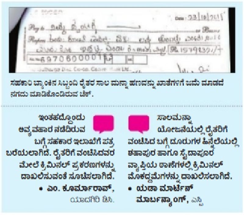1000 ರೈತರಿಗೆ 28 ಕೋಟಿ ರು. ವಂಚನೆ| ರೈತರ ಖಾತೆಗೆ ಜಮೆ ಮಾಡದೇ ಸ್ವಂತಕ್ಕೆ ಬಳಸಿಕೊಂಡ ಸಹಕಾರ ಸಿಬ್ಬಂದಿ| ಯಾದಗಿರಿಯಲ್ಲಿ ದೂರುಗಳು ದಾಖಲು