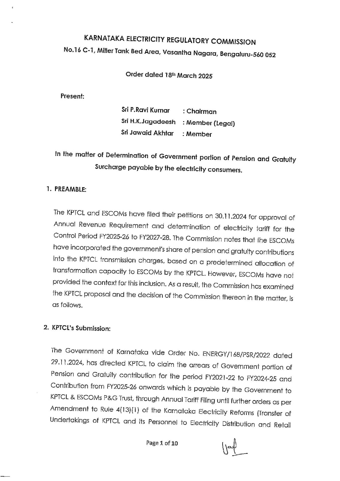 ಎಫ್ಕೆಸಿಸಿಐ ಸಲ್ಲಿಸಿದ್ದ ಅರ್ಜಿಯನ್ನು ವಜಾಗೊಳಿಸಿದ ನ್ಯಾಯಾಲಯವು ಮಾರ್ಚ್ 25, 2023 ರಂದು ಆದೇಶ ಹೊರಡಿಸಿ, ಕೆಇಆರ್ಸಿಯನ್ನು ಗ್ರಾಹಕ ಸುಂಕದಲ್ಲಿ ಸೇರಿಸಲು ಕ್ರಮಗಳನ್ನು ತೆಗೆದುಕೊಳ್ಳುವಂತೆ ಆದೇಶಿಸಿತು. 2006 ರಲ್ಲಿ, ನೌಕರರ ಸಂಘ ಮತ್ತು ಅವರ ಸಂಘಗಳು, ರಾಜ್ಯ ಸರ್ಕಾರ ಮತ್ತು ಕೆಪಿಟಿಸಿಎಲ್ ಮತ್ತು ಎಸ್ಕಾಮ್ಗಳ ನಡುವೆ ಹಣಕಾಸು ನಿರ್ವಹಣೆಯ ಕುರಿತು ತ್ರಿಪಕ್ಷೀಯ ಒಪ್ಪಂದಕ್ಕೆ ಬರಲಾಯಿತು.