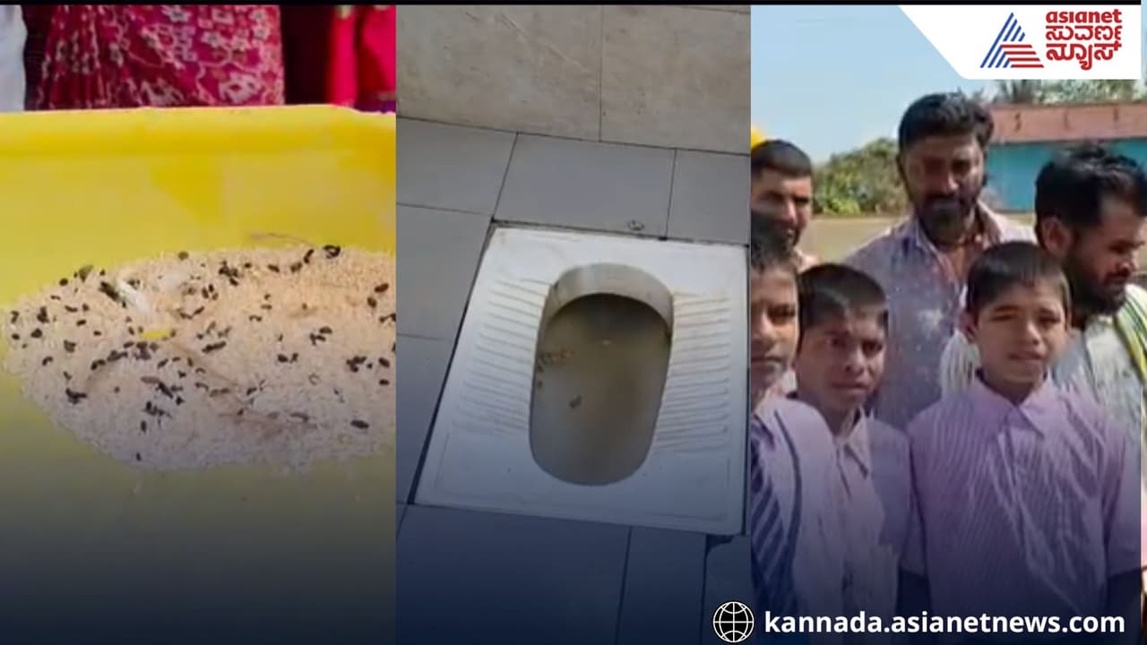 ಹಳಿಯಾಳ ತಾಲೂಕಿನ ಇಂದಿರಾ ಗಾಂಧಿ ವಸತಿ ಶಾಲೆಗೆ ಭೇಟಿ ನೀಡಿದ ಪೋಷಕರು, ಅಕ್ಕಿ ಮೂಟೆಗಳ ಮೇಲಿನ ಇಲಿ-ಹಲ್ಲಿ ಮಲ, ಕೊಳೆತ ತರಕಾರಿ ಮತ್ತು ಕಳಪೆ ನೈರ್ಮಲ್ಯ ಕಂಡು ಆಘಾತ. ಮಕ್ಕಳಿಂದ ಶೌಚಾಲಯ ಸ್ವಚ್ಛಗೊಳಿಸುವುದು ಮತ್ತು ದೂರು ನೀಡಿದರೆ ಟಿಸಿ ಕೊಡುವ ಬೆದರಿಕೆ ಹಾಕುತ್ತಿರುವ ಬಗ್ಗೆ ತಿಳಿದು, ಪೋಷಕರು ಆಕ್ರೋಶ.