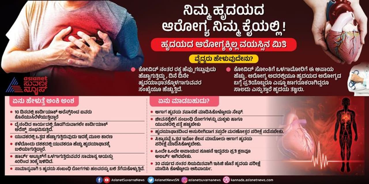 ಇದನ್ನು ಓದಿ: ನಿಮ್ಮ ಹೃದಯದ ಆರೋಗ್ಯ ನಿಮ್ಮ ಕೈಯಲ್ಲಿ, ಹೃದಯದ ಆರೋಗ್ಯಕ್ಕಿಲ್ಲ ವಯಸ್ಸಿನ ಮಿತಿ