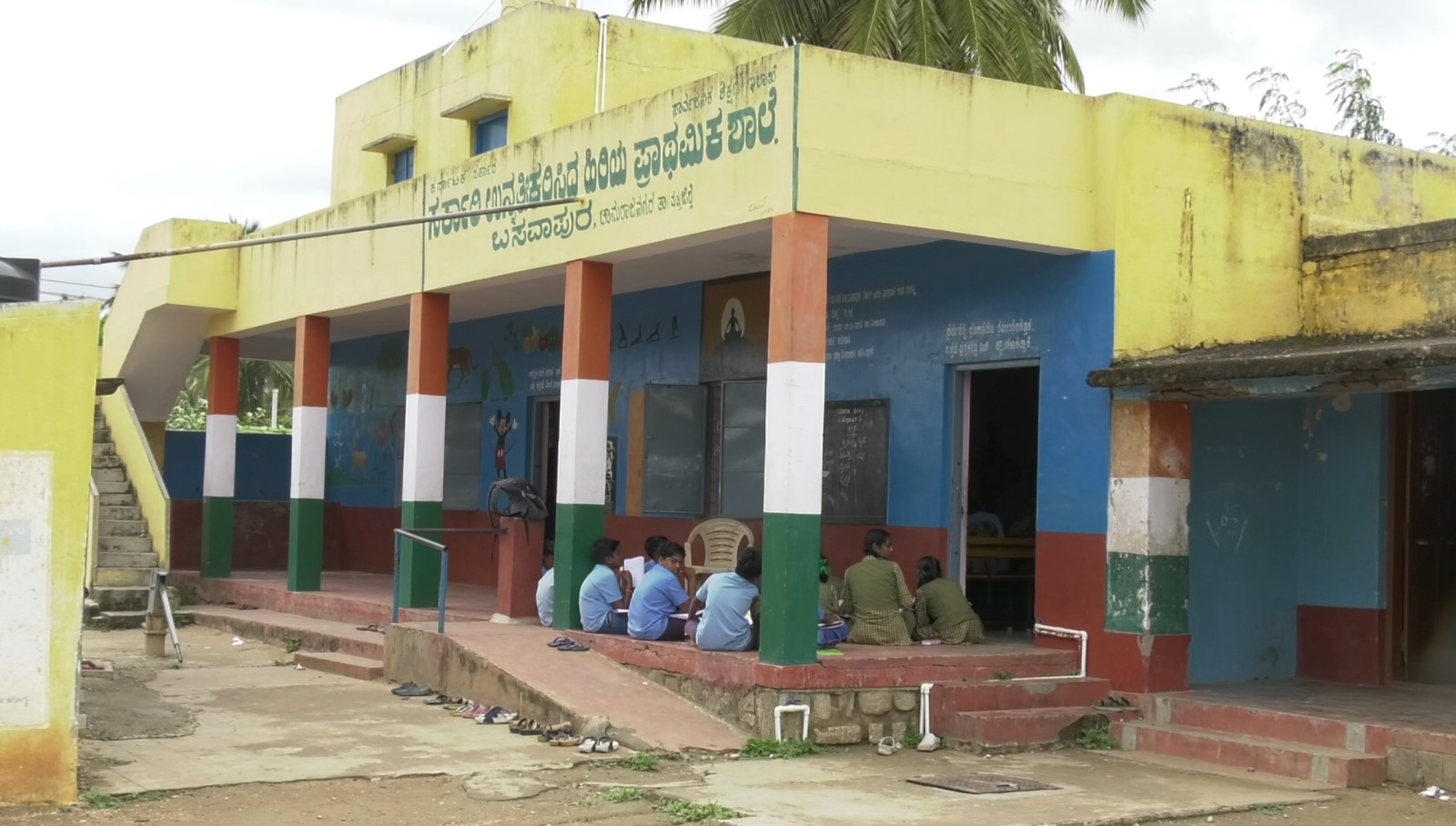 ಚಾಮರಾಜನಗರದ ಬಸವಾಪುರ ಸರ್ಕಾರಿ ಶಾಲೆಯಲ್ಲಿ 110 ಕ್ಕೂ ಹೆಚ್ಚು ಮಕ್ಕಳು ಕೇವಲ ನಾಲ್ಕು ಕೊಠಡಿಗಳಲ್ಲಿ ವ್ಯಾಸಂಗ ಮಾಡುತ್ತಿದ್ದಾರೆ. ಕುಸಿಯುತ್ತಿರುವ ಮೇಲ್ಚಾವಣಿ, ಸೋರುವ ಕೊಠಡಿಗಳ ನಡುವೆ ಹೊರಾಂಗಣದಲ್ಲಿ ಪಾಠ ಮಾಡುವ ಪರಿಸ್ಥಿತಿ ಎದುರಾಗಿದೆ.