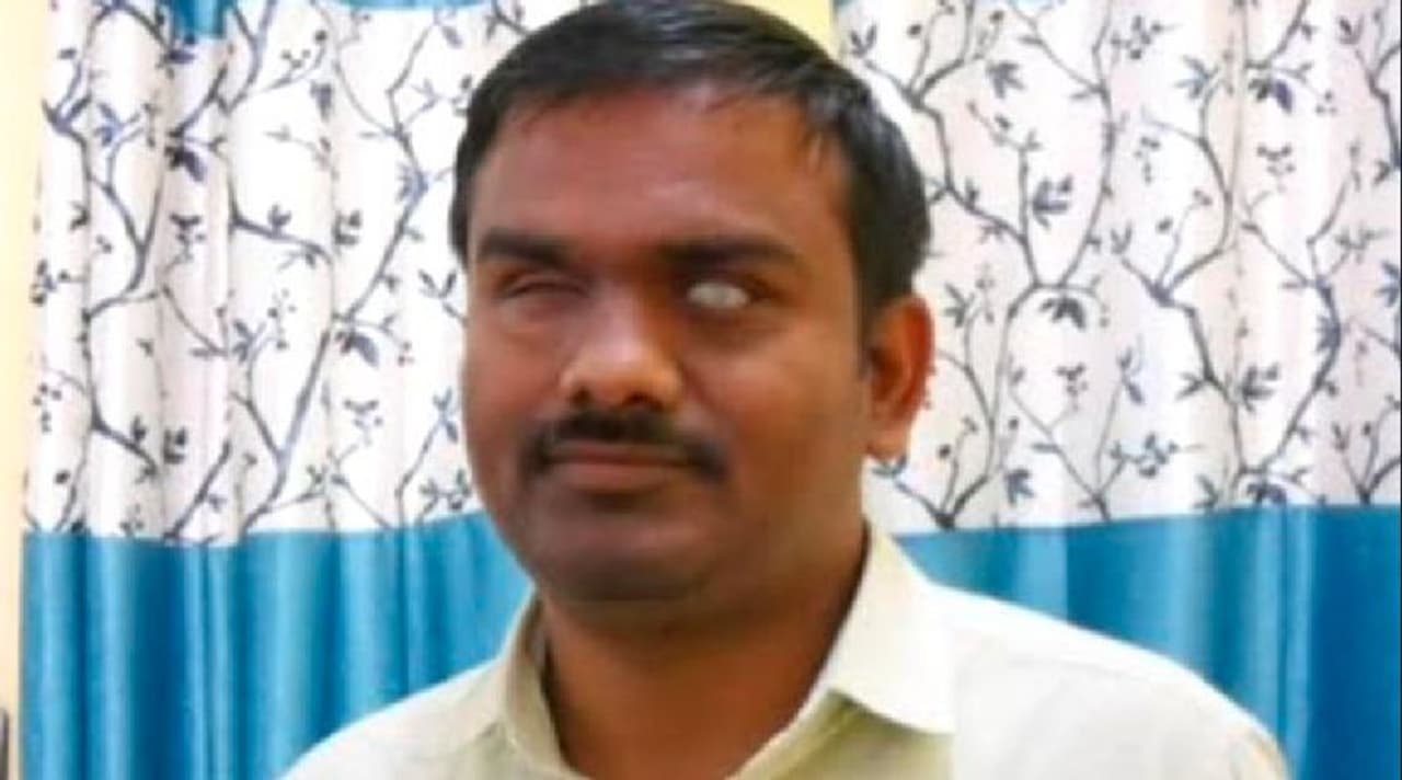 ಆತನಿಗೆ ಎರಡೂ ಕಣ್ಣುಗಳು ಕಾಣಿಸುವುದಿಲ್ಲ. ದೃಷ್ಟಿದೋಷ ಹೊಂದಿರುವ ಅಂಗವಿಕಲ. ಆದ್ರೂ ಹಠ ಬಿಡದೇ ಕಷ್ಟಪಟ್ಟು ಪರೀಕ್ಷೆ ಪಾಸು ಮಾಡಿ ಇದೀಗ ಸರ್ಕಾರಿ ನೌಕರನಾಗಿ ಸೇವೆ ಸಲ್ಲಿಸುತ್ತಿದ್ದಾನೆ. ಅದ್ರಲ್ಲೂ ಲೆಕ್ಕಪತ್ರ ಹೊಂದಿರೋ ಖಜಾನೆ ಇಲಾಖೆಯಲ್ಲಿ ನಿತ್ಯದ ಕೆಲಸ ಮಾಡ್ತಿದ್ದು, ಎಲ್ಲರೊಂದಿಗೆ ಬೆರೆತು ಸೈ ಎನಿಸಿಕೊಂಡಿದ್ದಾನೆ. ಆ ಸಾಧಕನ ಪರಿಚಯ ಇಲ್ಲಿದೆ