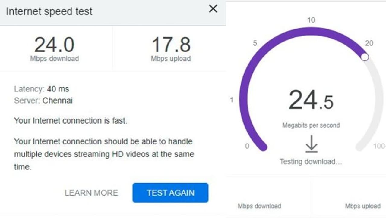 ಹಂತ 3: ಈ ಬಳಿಕ ಹೊಸ ಡೈಲಾಗ್ ಬಾಕ್ಸ್ ಕಾಣಿಸಿಕೊಳ್ಳುತ್ತದೆ, ನಂತರ 'Internet speed test' ಆಯ್ಕೆಯನ್ನು ನೋಡುತ್ತೀರಿ . “30 ಸೆಕೆಂಡುಗಳಲ್ಲಿ ನಿಮ್ಮ ಇಂಟರ್ನೆಟ್ ವೇಗವನ್ನು ಪರಿಶೀಲಿಸಿ. ವೇಗ ಪರೀಕ್ಷೆಯು ಸಾಮಾನ್ಯವಾಗಿ 40 MB ಗಿಂತ ಕಡಿಮೆ ಡೇಟಾವನ್ನು ವರ್ಗಾಯಿಸುತ್ತದೆ, ಆದರೆ ವೇಗದ ಸಂಪರ್ಕಗಳಲ್ಲಿ ಹೆಚ್ಚಿನ ಡೇಟಾವನ್ನು ವರ್ಗಾಯಿಸಬಹುದು, " ಎಂದು ಡೈಲಾಗ್ ಬಾಕ್ಸ್ನಲ್ಲಿ ತಿಳಿಸಲಾಗಿದೆ.