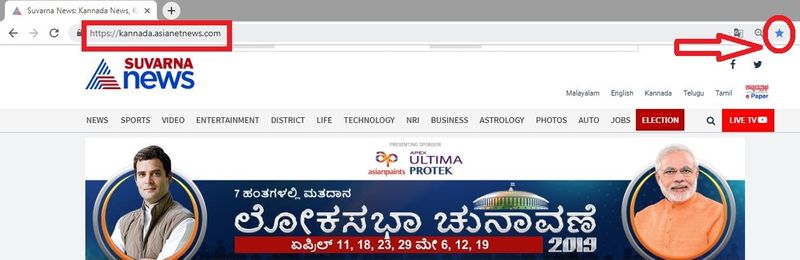 1. ಗೂಗಲ್ ಬ್ರೌಸರ್ ಓಪನ್ ಮಾಡಿ, ಅಡ್ರೆಸ್ ಬಾರ್ ನಲ್ಲಿ www.suvarnanews.com / https://kannada.asianetnews.com/ ಟೈಪ್ ಮಾಡಿ, ಅದನ್ನು ಬುಕ್ ಮಾರ್ಕ್ ಮಾಡಿಟ್ಟುಕೊಳ್ಳಿ.