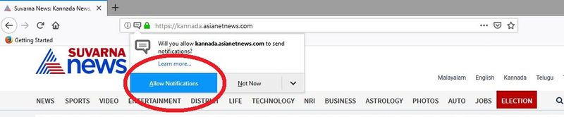 2. ಪ್ರತಿ ಸಾರಿ www.suvarnanews.com / https://kannada.asianetnews.com/ ತೆರೆದಾಗ ಡೆಸ್ಕ್ ಟಾಪ್ ನೋಟಿಫಿಕೇಶನ್ ಆಯ್ಕೆಯನ್ನು ಕೇಳುತ್ತೆ. ಅದನ್ನು ಆಯ್ದುಕೊಳ್ಳಿ.
