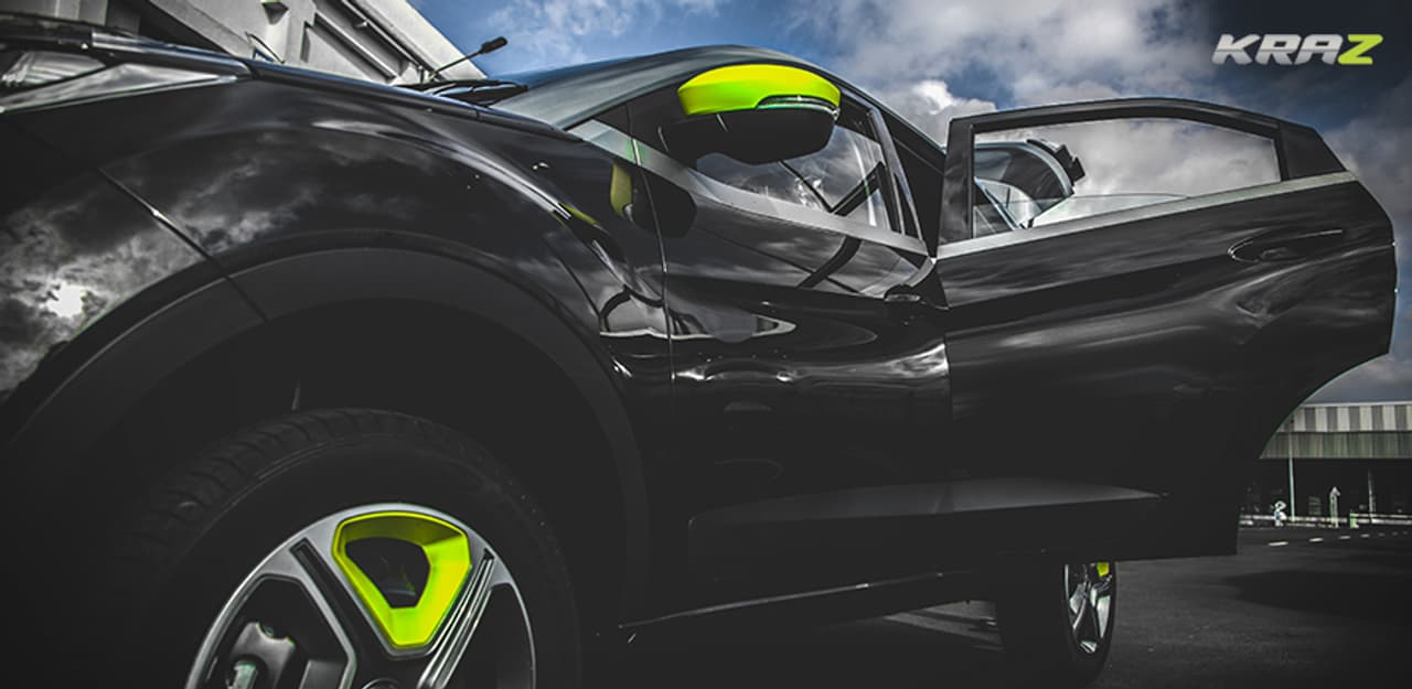 ನೂತನ ಕಾರು ಬ್ಲಾಕ್ ಮತ್ತು ಗ್ರೇ ಬಣ್ಣದ ಡ್ಯುಯಲ್ ಬಣ್ಣಗಳಿಂದ ಕಂಗೊಳಿಸುತ್ತಿದೆ. ಕಾರಿನ ಒಆರ್ವಿಎಮ್, ಫ್ರಂಟ್ ಗ್ರಿಲ್ ಮತು ವ್ಹೀಲ್ಗಳಲ್ಲಿ ಹಸಿರು ಬಣ್ಣದ ಟಚ್ ಈ ಕಾರಿಗೆ ವಿಶೇಷ ಲುಕ್ ನೀಡಿದೆ.