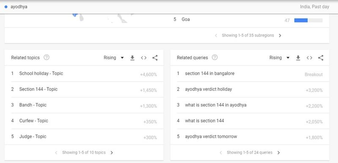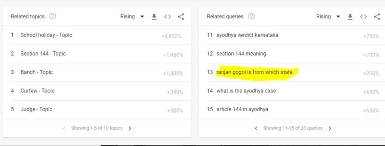 ಇನ್ನೇನು ಅಯೋಧ್ಯೆ ತೀರ್ಪು ಬರ್ತಾ ಇದೆ ಅಂದಾಗ ಜನರ ಕುತೂಹಲ ಏನಿತ್ತು ಗೊತ್ತಾ? ನೆಟ್ಟಿಗರು, ವಿಶೇಷವಾಗಿ ಯುವಜನರ ತಲೆಯಲ್ಲೇನಿದೆ ಎಂದು ತಿಳಿಬೇಕಾದ್ರೆ ಗೂಗಲ್ ಮಹಾಶಯನನ್ನ ಕೇಳಿದ್ರೆ ಸಾಕು. ಎಲ್ಲಾ ಗೊತ್ತಾಗುತ್ತೆ.