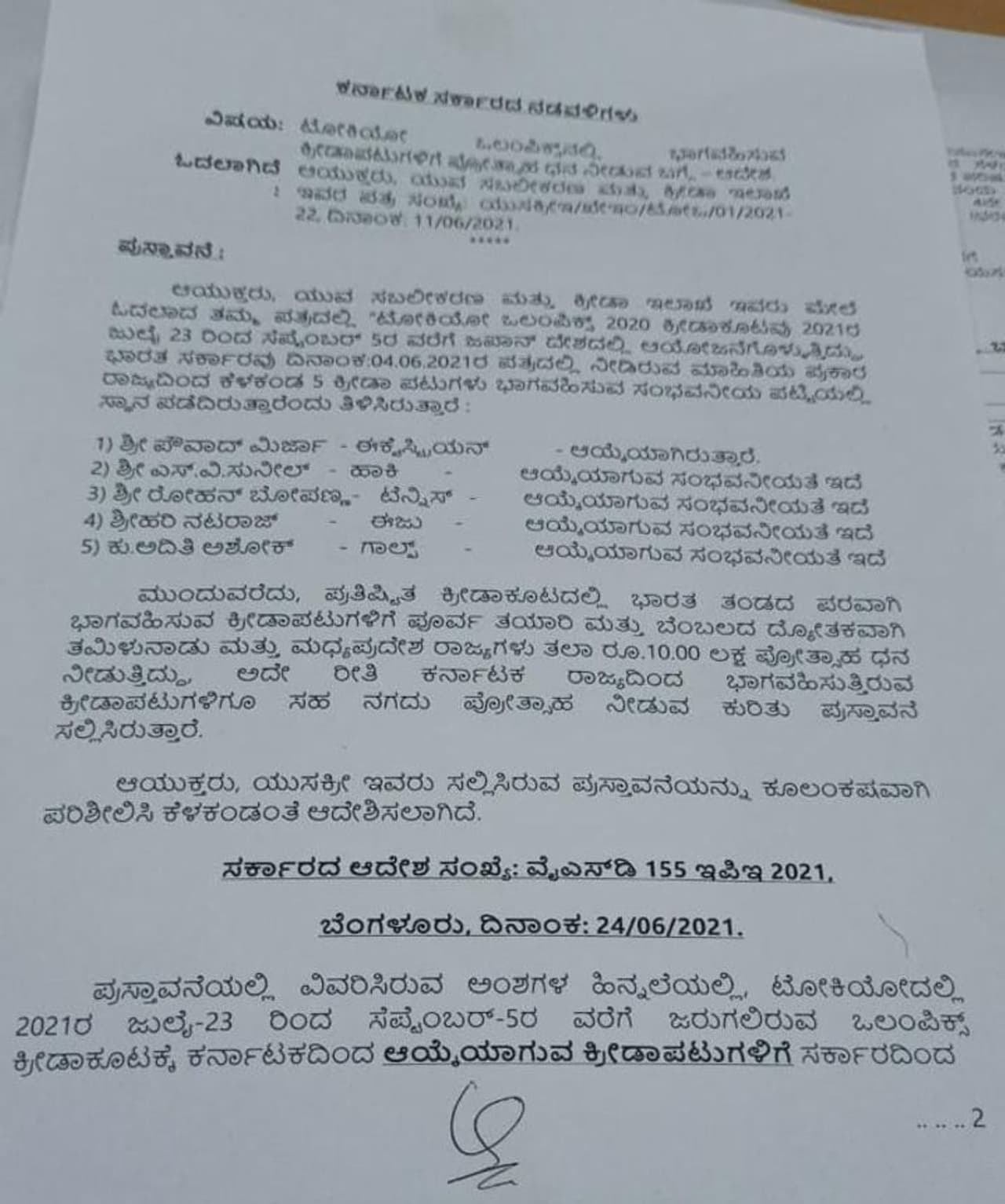 ಬಹುನಿರೀಕ್ಷಿತ ಟೋಕಿಯೋ ಒಲಿಂಪಿಕ್ಸ್ ಕ್ರೀಡಾಕೂಟವು ಜುಲೈ 23ರಿಂದ ಆಗಸ್ಟ್ 08ರವರೆಗೆ ನಡೆಯಲಿದೆ. ಒಲಿಂಪಿಕ್ಸ್ನಲ್ಲಿ ತಮ್ಮ ರಾಜ್ಯಗಳಿಂದ ದೇಶವನ್ನು ಪ್ರತಿನಿಧಿಸುವ ಕ್ರೀಡಾಪಟುಗಳಿಗೆ ಪೂರ್ವ ತಯಾರಿಗೆ ಹಾಗೂ ಬೆಂಬಲ ಸೂಚಕವಾಗಿ ಈಗಾಗಲೇ ತಮಿಳುನಾಡು, ಮಧ್ಯ ಪ್ರದೇಶ ಸರ್ಕಾರಗಳು ತಲಾ 10 ಲಕ್ಷ ರುಪಾಯಿ ಪ್ರೋತ್ಸಾಹಧನವನ್ನು ಘೋಷಿಸಿದೆ. ಅದೇ ರೀತಿ ಕರ್ನಾಟಕ ರಾಜ್ಯ ಸರ್ಕಾರ ಕೂಡಾ ರಾಜ್ಯದ ಕ್ರೀಡಾಪಟುಗಳ ಬೆಂಬಲಕ್ಕೆ ಮುಂದಾಗಿದೆ.