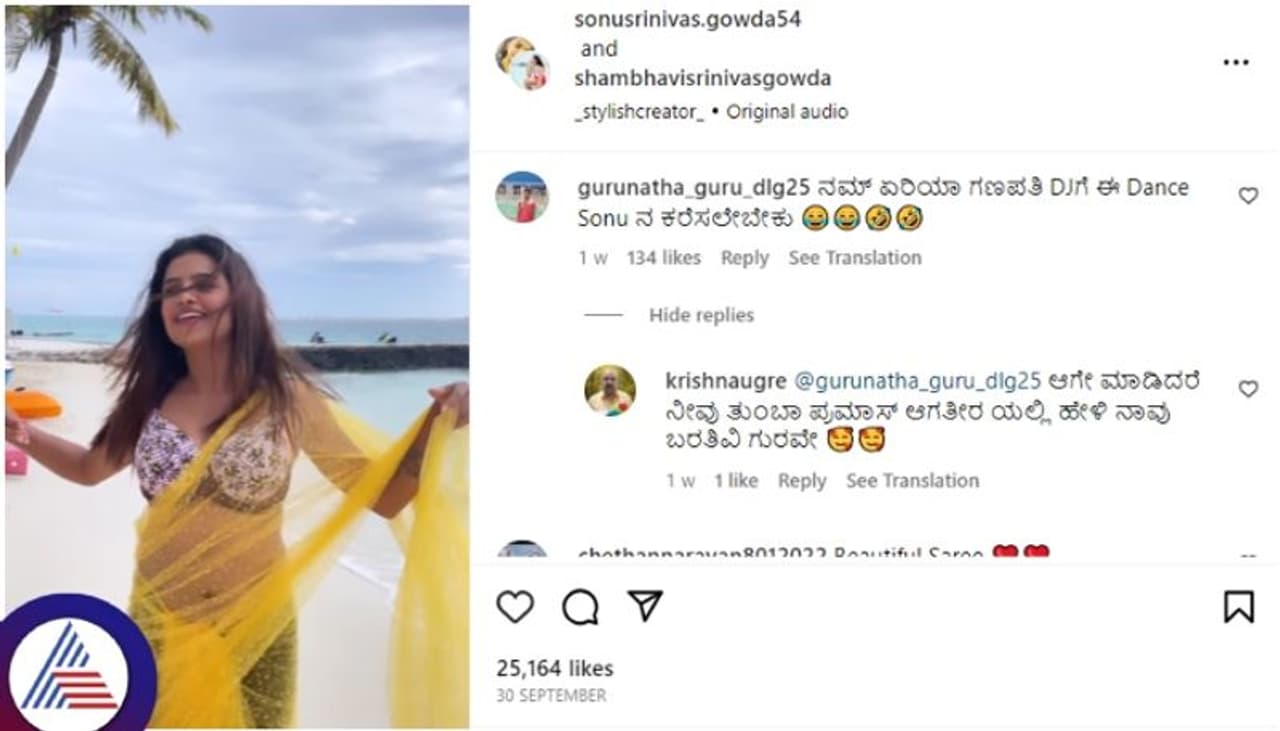 ಸೋನು ಗೌಡ ಹಂಚಿಕೊಂಡಿರುವ ಈ ವಿಡಿಯೋ ನೋಡಿದ ನೆಟ್ಟಿಗನೊಬ್ಬ ನಮ್ ಏರಿಯಾ ಗಣಪತಿ ಡಿಜೆಗೆ ಈ ಡ್ಯಾನ್ಸ್ ಮಾಡೋಕೆ ಸೋನುಗೌಡಳನ್ನು ಕರೆಸಲೇಬೇಕು ಎಂದು ಹೇಳೊಕೊಂಡಿದ್ದಾನೆ. ಈ ಮೂಲಕ ಗಣಪತಿ ಹಬ್ಬದ ಡಿಜೆ ಡ್ಯಾನ್ಸ್ಗೆ ಆಹ್ವಾನವನ್ನೂ ನೀಡಿದ್ದಾನೆ. ಆದರೆ, ಇದಕ್ಕೆ ಸೋನುಗೌಡ ಮಾತ್ರ ಯಾವುದೇ ಪ್ರತಿಕ್ರಿಯೆ ನೀಡಿಲ್ಲ. ಮತ್ತೊಂದೆಡೆ ನೆಟ್ಟಿಗನ ಆಹ್ವಾನಕ್ಕೆ ಮತ್ತೊಬ್ಬರು ಪ್ರತಿಕ್ರಿಯೆ ನೀಡಿದ್ದು, ನೀವು ಡಿಜೆ ಡ್ಯಾನ್ಸ್ಗೆ ಸೋನುಗೌಡಳನ್ನು ಕರೆಸಿದರೆ ನಮಗೂ ಹೇಳಿ ನಾವು ಕೂಡ ಡ್ಯಾನ್ಸ್ ನೋಡಲು ಬರುತ್ತೇವೆ ಎಂದು ಹೇಳಿದ್ದಾನೆ. ಒಂದು ವೇಳೆ ನೀವು ಡಿಜೆ ಡ್ಯಾನ್ಸ್ಗೆ ಸೋನುಗೌಡ ಕರೆಸಿದರೆ ಭಾರಿ ಫೇಮಸ್ ಆಗ್ತೀರಿ ಎಂದು ಹೇಳಿದ್ದಾನೆ.