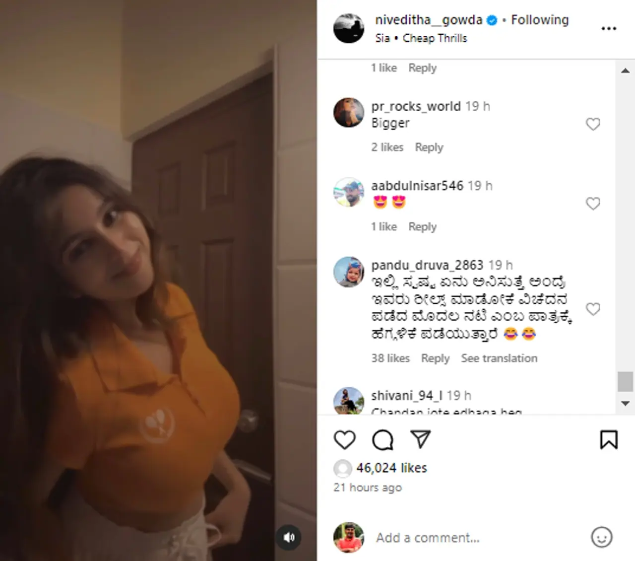 ನಿವೇದಿತಾ ಗೌಡ ಡಿವೋರ್ಸ್ ಪಡೆದ ನಂತರ ಅತಿಹೆಚ್ಚು ರೀಲ್ಸ್ ಮಾಡಿ ಪೋಸ್ಟ್ ಮಾಡುತ್ತಿದ್ದಾಳೆ. ಅದರಲ್ಲಿಯೂ ಕೆಲವು ರೀಲ್ಸ್ಗಳಲ್ಲಿ ತುಂಡು ಬಟ್ಟೆಗಳನ್ನು ತೊಟ್ಟು ಪೋಸ್ಟ್ ಮಾಡಿಕೊಂಡಿ ಅಭಿಮಾನಿಗಳಿಗೆ ಮಾದಕತೆಯ ರಸದೌತಣವನ್ನೇ ನೀಡುತ್ತಾರೆ. ಆದರೆ, ಇದನ್ನು ನೋಡಿದ ನೆಟ್ಟಿಗರ ಪೈಕಿ ಸಾಕಷ್ಟು ಜನರು ಲೈಕ್ ಮಾಡಿ ಸುಮ್ಮನಾಗುತ್ತಾರೆ. ಇನ್ನು ಕಾಮೆಂಟ್ ಮಾಡಿದವರ ಪೈಕಿ ಬಹುತೇಕರು ಕಟ್ಟದಾಗಿ ಮಾತನಾಡಿದವರೇ ಹೆಚ್ಚಾಗಿರುತ್ತಾರೆ. ಅದರಲ್ಲೊಬ್ಬ (pandu_druva_2863) ಎನ್ನುವ ವ್ಯಕ್ತಿ, ನಿವೇದಿತಾ ಗೌಡ ಅವರು ನಿನ್ನೆ ಮಾಡಿದ ಮಾದಕ ರೀಲ್ಸ್ ಪೋಸ್ಟ್ಗೆ 'ಇಲ್ಲಿ ಸ್ಪಷ್ಟ ಏನು ಅನಿಸುತ್ತೆ ಅಂದ್ರೆ ಇವರು ರೀಲ್ಸ್ ಮಾಡೋಕೆ ವಿಚ್ಚೇದನ ಪಡೆದ ಮೊದಲ ನಟಿ ಎಂಬ ಪಾತ್ರಕ್ಕೆ ಹೆಗ್ಗಳಿಕೆ ಪಡೆಯುತ್ತಾರೆ' ಎಂದು ಕಾಮೆಂಟ್ ಮಾಡಿದ್ದಾನೆ. ಇನ್ನು ಕೆಲವರು ಆ ರೂಮು... ಆ ಬಾಗಿಲು ಬಿಟ್ಟು ಆಚೆ ಬರಬೇಡ.ಅಲ್ಲೇ ಇರು ರೀಲ್ಸ್ ಮಾಡ್ಕೊಂಡು. yesvikranth: ಅದ್ಯಾಕೆ ಇತ್ತೀಚೆಗೆ ಡಿವರ್ಸ್ ಆದಂತ ಕೆಲವು ಟಿವಿ ಸಿನಿಮಾ ದವರು ಗಂಡನ ಬಿಟ್ಟಮೇಲೆ ಈ ರೀತಿ ಆಡ್ತಾ ಇದ್ದಾರೆ. nageshwar90: ಹಣೆಬೊಟ್ಟು ಇಟ್ಟಿರೋದನ್ನು ಎಷ್ಟು ಜನ ನೋಡಿದೀರಿ? shashidharjkkammar: 'ಆಡೋ ಮಕ್ಕಳಿಗೆ ಮದುವೆ ಮಾಡಿದರೆ ಮಾಡೋ ಜಾಗದಲ್ಲಿ ಮಣ್ಣು ಹಾಕಿದರಂತೆ..... ಹಂಗಾಯ್ತು ಇವಳುದು.. ಎಂದು ಕಾಮೆಂಟ್ಗಳನ್ನು ಮಾಡಿದ್ದಾರೆ.