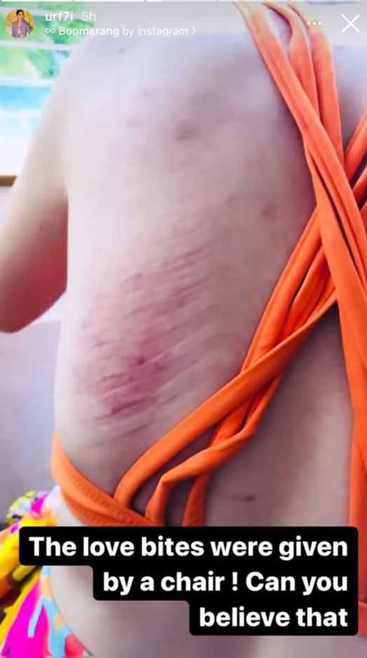 ತನ್ನ ಇತ್ತೀಚಿನ ಸ್ಟೋರಿಯಲ್ಲಿ, ಉರ್ಫಿ ಜಾವೇದ್ ತನ್ನ ಬೆನ್ನಿನ ಚಿತ್ರವನ್ನು ಹಂಚಿಕೊಂಡಿದ್ದಾರೆ. ಕಲರ್ಫುಲ್ ಬಾಟಮ್ನೊಂದಿಗೆ ಕಿತ್ತಳೆ ಬಣ್ಣದ ಟಾಪ್ ಅನ್ನು ಧರಿಸಿರುವ ನಟಿಯನ್ನು ಕಾಣಬಹುದು. ಆಕೆಯ ಬೆನ್ನಿನ ಮೇಲೆ ಬಹಳಷ್ಟು ಕೆಂಪು ಗುರುತುಗಳನ್ನು ನೋಡಬಹುದು, ಇದು ಅನೇಕರಿಗೆ ಗೊಂದಲದ ದೃಶ್ಯವಾಗಿತ್ತು. ಕುರ್ಚಿಗಳಿಂದ ಸಿಕ್ಕಿದ ಲವ್ಬೈಟ್ಗಳು. ಅದನ್ನು ನೀವು ನಂಬುತ್ತೀರಾ? ಎಂದು ಉರ್ಫಿ ಜಾವೇದ್ ತಮ್ಮ ಪೋಸ್ಟ್ಗೆ ಶೀರ್ಷಿಕೆ ನೀಡಿದ್ದಾರೆ. ಸಸ್ಪೆನ್ಸ್ಗಾಗಿ ಕಾಯುತ್ತಿದ್ದ ಅಭಿಮಾನಿಗಳು ನಟಿಯ ಉತ್ತರ ಕೇಳಿ ನಿರಾಶೆಗೊಂಡಿದ್ದಾರೆ.