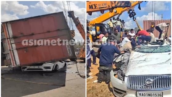 ವೋಲ್ವೋ ಕಾರಿನ ಮೇಲೆ ಕಂಟೈನರ್ ಬಿದ್ದ ಪ್ರಕರಣ: ನೆಲಮಂಗಲ ಅಪಘಾತ ಭೀಕರ ದೃಶ್ಯ ಸಿಸಿಟಿವಿಯಲ್ಲಿ ಸೆರೆ