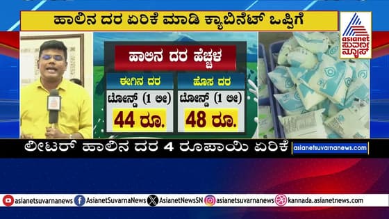 ನಂದಿನಿ ಹಾಲಿನ ದರವನ್ನು ಪ್ರತಿ ಲೀಟರ್ಗೆ ₹4 ಹೆಚ್ಚಿಸಲು ಕರ್ನಾಟಕ ಸರ್ಕಾರ ನಿರ್ಧಾರ ಕೈಗೊಂಡಿದೆ. ಈ ತೀರ್ಮಾನವನ್ನು ಮುಖ್ಯಮಂತ್ರಿ ಸಿದ್ದರಾಮಯ್ಯ ಅವರ ನೇತೃತ್ವದಲ್ಲಿ ನಡೆದ ಸಚಿವ ಸಂಪುಟ ಸಭೆಯಲ್ಲಿ ತೆಗೆದುಕೊಳ್ಳಲಾಗಿದೆ.ಈ ನಿರ್ಧಾರದೊಂದಿಗೆ, ಹೋಮೋಜಿನೈಸ್ ಟೋನ್ಡ್ ಹಾಲಿನ ದರ ಅರ್ಧ ಲೀಟರ್ಗೆ ₹24 ರಿಂದ ₹26 ಗೆ ಮತ್ತು ಒಂದು ಲೀಟರ್ಗೆ ₹45 ರಿಂದ ₹49 ಗೆ ಏರಿಕೆಯಾಗಿದೆ. ಹಾಲು ಉತ್ಪಾದನಾ ವೆಚ್ಚ ಮತ್ತು ರೈತರಿಗೆ ನೀಡುವ ಬೆಂಬಲವನ್ನು ಗಮನದಲ್ಲಿಟ್ಟುಕೊಂಡು ಈ ದರ ಪರಿಷ್ಕರಣೆ ಮಾಡಲಾಗಿದೆ. ಸರ್ಕಾರ ಈ ಹೆಚ್ಚಳದಿಂದ ಬಂದ ಆದಾಯವನ್ನು ಪೂರ್ಣವಾಗಿ ಹಾಲು ಉತ್ಪಾದಕರಿಗೆ ವರ್ಗಾಯಿಸಲು ಉದ್ದೇಶಿಸಿದೆ. Suvarna News | Kannada News | Asianet Suvarna News | Latest Kannada News | Suvarna News 24x7 | ಕನ್ನಡ ಲೈವ್ ನ್ಯೂಸ್ | ಏಷ್ಯಾನೆಟ್ ಸುವರ್ಣ ನ್ಯೂಸ್ | Karnataka Political Updates Suvarna News Live: https://www.youtube.com/live/R50P2knCQBs?feature=shared
