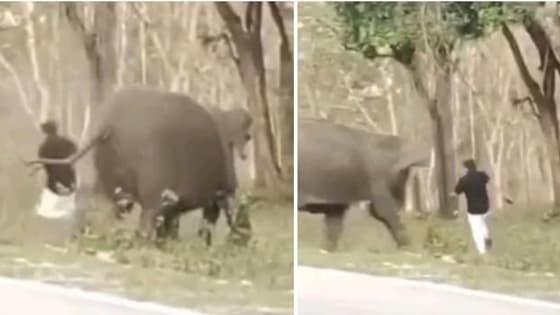 ಒಂಟಿ ಸಲಗದ ದಾಳಿಯಿಂದ ಬೈಕ್ ಸವಾರ ಜಸ್ಟ್ ಮಿಸ್