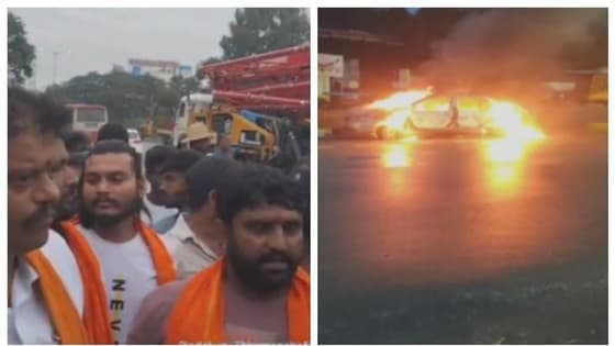 ಅಕ್ರಮ ಗೋ ಮಾಂಸ ಸಾಗಾಟ: ವಾಹನ ತಡೆದು ಬೆಂಕಿ ಇಟ್ಟ ಶ್ರೀರಾಮ ಸೇನೆ ಕಾರ್ಯಕರ್ತರು
