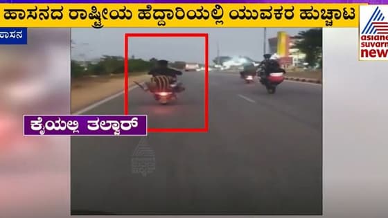ಕೈಯಲ್ಲಿ ತಲ್ವಾರ್ ಹಿಡಿದು ಪುಂಡರು ರಾಷ್ಟ್ರೀಯ ಹೆದ್ದಾರಿಯಲ್ಲಿ ವ್ಹೀಲಿಂಗ್ ಮಾಡುತ್ತಿರುವುದು ಪ್ರಯಾಣಿಕರು ಹಾಗೂ ಸ್ಥಳೀಯರನ್ನು ಬೆಚ್ಚಿ ಬೀಳಿಸಿದೆ. ಈ ಘಟನೆ ಹಾಸನ ಜಿಲ್ಲೆಯ ಚನ್ನರಾಯಪಟ್ಟಣದ ರಾಷ್ಟ್ರೀಯ ಹೆದ್ದಾರಿಯಲ್ಲಿ ಯುವಕರ ಗುಂಪು ನಿಯಮ ಉಲ್ಲಂಘಿಸಿ ವ್ಹೀಲಿಂಗ್ ಮಾಡುತ್ತಿರುವುದು ಸಾಮಾನ್ಯವಾಗಿದೆ. ಬೆಚ್ಚಿ ಬಿದ್ದಿರುವ ಜನ ಪುಂಡರ ಹುಚ್ಚಾಟಕ್ಕೆ ಬ್ರೇಕ್ ಹಾಕುವಂತೆ ಪೊಲೀಸರನ್ನು ಕೋರಿದ್ದಾರೆ.