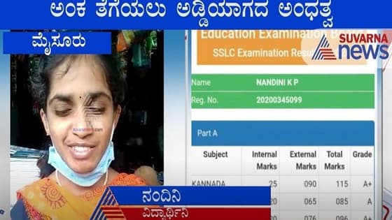 ಹೌದು... ಮೈಸೂರಿನ ಗ್ರಾಮೀಣ ಪ್ರತಿಭೆಯಾದ ಈಕೆಯ ಹೆಸರು ನಂದಿನಿ ಅಂತ ದೃಷ್ಟಿಹೀನರು. ಆದ್ರೆ ಎಸ್ಎಸ್ಎಲ್ಸಿ ಪರೀಕ್ಷೆಯಲ್ಲಿ ಈಕೆ ಮಾಡಿದ ಸಾಧನೆ ಎಲ್ಲರಿಗೂ ಮಾದರಿ. ಅಂಕ ತೆಗೆಯಲು ಅಂಧತ್ವ ಅಡ್ಡಿಯಾಗಲ್ಲ ಎನ್ನುವುದನ್ನು ತೋರಿಸಿಕೊಟ್ಟಿದ್ದಾಳೆ.