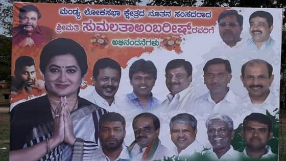 ಸುಮಲತಾ ಅಭಿನಂದನಾ ಫ್ಲೆಕ್ಸ್ ನಲ್ಲಿ ರಾರಾಜಿಸಿದ 'ಕೈ' ನಾಯಕರ ಫೋಟೋ..!