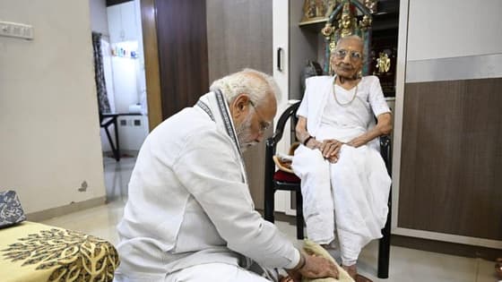 Heeraben Modi Birthday: ಅಮ್ಮನ ಪಾದ ಪೂಜೆ ಮಾಡಿ, ಆಶೀರ್ವಾದ ಪಡೆದ ಮೋದಿ