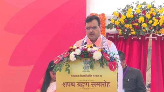 ರಾಜಸ್ಥಾನದ ನೂತನ ಮುಖ್ಯಮಂತ್ರಿಯಾಗಿ ಭಜನ್ ಲಾಲ್ ಶರ್ಮಾ(Bhajan Lal Sharma) ಪ್ರಮಾಣ ವಚನ ಸ್ವೀಕರಿಸಿದ್ದಾರೆ. ಇವರ ಜೊತೆಗೆ ಉಪಮುಖ್ಯಮಂತ್ರಿಯಾಗಿ ದಿಯಾ ಕುಮಾರಿ ಹಾಗೂ ಪ್ರೇಮ್ ಚಂದ್ರ ಬೈರ್ವಾ ಪ್ರಮಾಣವಚನ(Oath) ಸ್ವೀಕರಿಸಿದ್ದಾರೆ. 57ನೇ ಹುಟ್ಟಿದ ಹಬ್ಬದ ದಿನವೇ ಭಜನ್ ಲಾಲ್ ಶರ್ಮಾ ಸಿಎಂ ಆಗಿದ್ದಾರೆ. ಮೊದಲ ಬಾರಿ ಶಾಸಕನಾಗಿದ್ದರೂ ಅವರಿಗೆ ರಾಜಸ್ಥಾನ ಸಿಎಂ(Rajasthan CM) ಹುದ್ದೆ ಒಲಿದಿದೆ. ಘಟಾನುಘಟಿಗಳನ್ನ ಹಿಂದಿಕ್ಕಿ ಭಜನ್ ಲಾಲ್ ಶರ್ಮಾ ಸಿಎಂ ಆಗಿದ್ದಾರೆ. ರಾಜ್ಯಪಾಲ ಕಲ್ರಾಜ್ ಮಿಶ್ರಾ ಅವರು ಪ್ರಮಾಣ ವಚನ ಬೋಧನೆ ಮಾಡಿದರು. ರಾಜಸ್ಥಾನದ ಜೈಪುರದಲ್ಲಿ ಪ್ರಮಾಣ ವಚನ ಕಾರ್ಯಕ್ರಮ ನಡೆಯಿತು. ನೂತನ ಸಿಎಂ ಪದಗ್ರಹಣದಲ್ಲಿ ಮೋದಿ, ಅಮಿತ್ ಶಾ ಭಾಗಿಯಾಗಿದ್ದರು.
