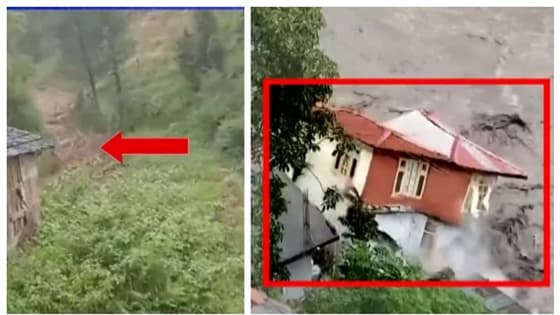 ಹಿಮಾಚಲ ಪ್ರದೇಶದಲ್ಲಿ ಭಾರೀ ಮಳೆಯಾಗುತ್ತಿದ್ದು, ಬೆಟ್ಟದಿಂದ ಹರಿದು ಬಂದ ನೀರಿಗೆ ಹಲವು ಮನೆಗಳು ನೆಲಸಮವಾಗಿದೆ.