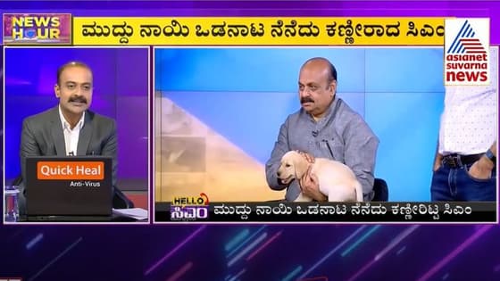 ಏಷ್ಯಾನೆಟ್ ಸುವರ್ಣನ್ಯೂಸ್ ಸ್ಟುಡಿಯೋದಲ್ಲಿ ನಾಯಿ ಮರಿ ಪಡೆದು ಭಾವುಕರಾದ CM ಬೊಮ್ಮಾಯಿ
