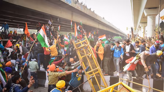 ನವದೆಹಲಿ (ಜ. 27): ಗಣರಾಜ್ಯೋತ್ಸವ ದಿನ ದೇಶಭಕ್ತಿ, ಏಕತೆ, ಸಾಂಸ್ಕೃತಿಕ ಸಂಗಮಗಳಿಗೆ ಸಾಕ್ಷಿಯಾಗುತ್ತಿದ್ದ ರಾಷ್ಟ್ರ ರಾಜಧಾನಿ ದೆಹಲಿ, ರಣಾಂಗಣವಾಗಿ ಮಾರ್ಪಟ್ಟಿದೆ. ಪ್ರತಿಭಟನಾಕಾರರು, ಪೊಲೀಸರು ಹಾಕಿದ್ದ ಬ್ಯಾರಿಕೇಡ್ ಮುರಿದು ಸಿಕ್ಕ ಸಿಕ್ಕ ರಸ್ತೆಗಳಲ್ಲಿ ನುಗ್ಗಿದ್ದಾರೆ. ದಾರಿಯುದ್ಧಕ್ಕೂ ಪೊಲೀಸರ ಜೊತೆ ಘರ್ಷಣೆ ನಡೆದಿದೆ. ಕೊನೆಗೆ ಕೆಂಪುಕೋಟೆಗೂ ಮುತ್ತಿಗೆ ಹಾಕಿದ ಉದ್ರಿಕ್ತರು ರಾಷ್ಟ್ರಧ್ವಜ ಹಾರಿಸಬೇಕಾದ ಧ್ವಜಸ್ತಂಭ ಏರಿ ಸಿಖ್ ಮತ್ತು ಇತರ ಧ್ವಜಗಳನ್ನು ಹಾರಿಸಿದರು.