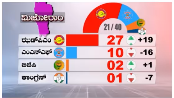ಈಶಾನ್ಯ ರಾಜ್ಯವಾದ ಮಿಜೋರಾಂ ವಿಧಾನಸಭೆ ಚುನಾವಣೆಯಲ್ಲಿ ಆಡಳಿತರೂಢ ಮಿಜೋ ನ್ಯಾಷನಲ್ ಫ್ರಂಟ್ ಹೀನಾಯ ಸೋಲುಕಂಡಿದೆ.