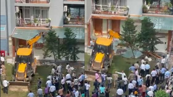 ಶ್ರೀಕಾಂತ್ ತ್ಯಾಗಿ ಮಾಲೀಕತ್ವದ ಗ್ರ್ಯಾಂಡ್ ಓಮ್ಯಾಕ್ಸ್ ಕಾಂಪ್ಲೆಕ್ಸ್ ಅಕ್ರಮವಾಗಿದ್ದು, ಅಧಿಕಾರಿಗಳು ಬುಲ್ಡೋಜರ್ ಬಳಸಿ ತೆರವು ಕಾರ್ಯಾಚರಣೆ ಕೈಗೊಂಡಿದ್ದಾರೆ. ಈ ವೇಳೆ ಅಧಿಕಾರಿಗಳು ಹಾಗೂ ತ್ಯಾಗಿ ಬೆಂಬಲಿಗರಿಂದ ತೀವ್ರ ವಾಗ್ವಾದ ನಡೆದಿದೆ.
