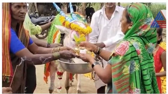 ರೈತ ರಮೇಶ್ ತಿಗಡಿ ಕುಟುಂಬ ಗರ್ಭ ಧರಿಸಿದ ಗೋವಿಗೆ ಸೀಮಂತ ಕಾರ್ಯ ಮಾಡಿದೆ.