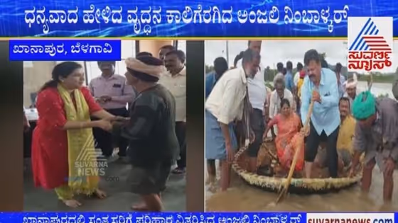 ಬೆಳಗಾವಿ, [ಆ.10]: ನಮ್ಮ ಕಷ್ಟ-ಸುಖಗಳಿಗೆ ಇರುತ್ತಾರೆಂದು ಚುನಾವಣೆಗಳಲ್ಲಿ ಗೆಲ್ಲಿಸಿ ಕಳುಹಿಸುತ್ತಾರೆ. ಅದಕ್ಕೆ ಖಾನಪುರ ಕಾಂಗ್ರೆಸ್ ಶಾಸಕಿ ಅಂಜಲಿ ನಿಂಬಾಳ್ಕರ್ ಅವರು ಅಷ್ಟೇ ತಮ್ಮ ಜವಾಬ್ದಾರಿಯನ್ನು ನಿಭಾಯಿಸುತ್ತಿದ್ದಾರೆ. ಪ್ರವಾಹದಲ್ಲಿ ಮನೆ-ಮಠ ಕಳೆದುಕೊಂಡಿರುವರಿಗೆ ಶನಿವಾರ ಪರಿಹಾರ ಚೆಕ್ ವಿತರಿಸಿದರು. ಈ ವೇಳೆ ವೃದ್ಧನೋರ್ವ ಅಂಜಲಿಯವರಿಗೆ ಧನ್ಯವಾದ ಹೇಳಿದರು. ಇದಕ್ಕೆ ಅಂಜಲಿ, ಧನ್ಯವಾದ ಹೇಳಿದ ವೃದ್ಧನ ಕಾಲು ಮುಟ್ಟಿ ನಮಸ್ಕರಿಸಿದ್ದಾರೆ. ಮತ್ತೊಂದೆಡೆ ನೀರಿಲ್ಲದ ಕಡೆ ಬೋಟಿಗೆ ಹುಟ್ಟಾಕಿ ಫೋಟೋಗೆ ಫೋಸ್ ನೀಡಿರೋ ಬಿಜೆಪಿ ಶಾಸಕ ರೇಣುಕಾಚಾರ್ಯ ಸಾಮಾಜಿಕ ಜಾಲತಾಣಗಲ್ಲಿ ಅಪಹಾಸ್ಯಕ್ಕೀಡಾಗಿದ್ದಾರೆ.