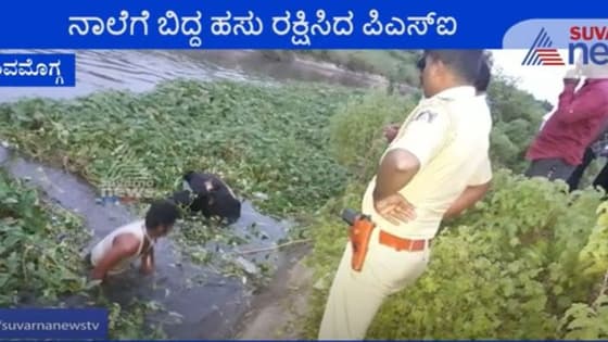 ನಾಲೆಗೆ ಬಿದ್ದ ಹಸು ರಕ್ಷಿಸಿದ ಪಿಎಸ್ಐ/ ಜನರೊಂದಿಗೆ ಸೇರಿ ಹಸು ರಕ್ಷಣೆ/ ಜನರಿಂದ ಮಾದರಿ ಕಾರ್ಯ/ ನಾಲೆಗೆ ಬಿದ್ದು ಪ್ರಾಣಾಪಾಯಕ್ಕೆ ಸಿಲುಕಿದ್ದ ಆಕಳು