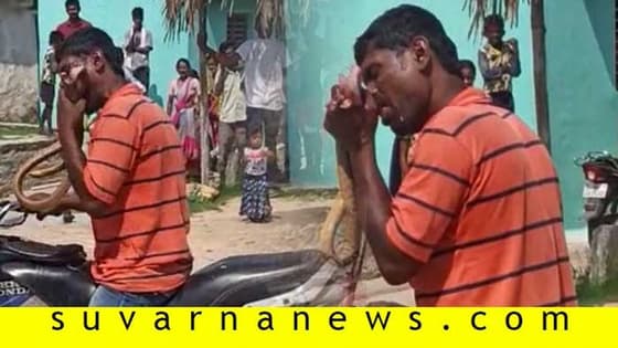 ಕುಡಿದು ಗಾಡಿಯಲ್ಲಿ ಹೋಗುತ್ತಿದ್ದಾಗ ಹಾವು ಅಡ್ಡ ಬಂದಿದೆ. ದಾರಿಯಲ್ಲಿ ನಿಲ್ಲಿಸಿಕೊಂಡು ಹಾವನ್ನು ಕೈಗೆ ಎತ್ತಿಕೊಂಡ ಭೂಪ ಕಚ್ಚಿ ಕಚ್ಚಿ ಸಾಯಿಸಿದ್ದಾನೆ.
