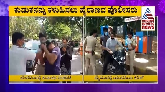 ಬೆಂಗಳೂರು(ಜೂ. 08) ಲಾಕ್ ಡೌನ್ ಟೈಮ್ ನಲ್ಲಿ ಕುಡುಕ ಪೊಲೀಸರಿಗೆ ಹಾವಳಿ ಕೊಟ್ಟಿದ್ದಾನೆ. ಕುಡುಕನ ಸಂಭಾಳಿಸಲು ಪೊಲೀಸರು ಹೈರಾಣವಾಗಿ ಹೋಗಿದ್ದಾರೆ.