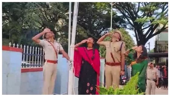 ಹಾಸನದ ಎಸ್ಪಿ ಕಚೇರಿಯಲ್ಲಿ ಬುಡಕಟ್ಟು ಸಮುದಾಯದ ಯುವತಿಯೊಬ್ಬರು ಧ್ವಜಾರೋಹಣ ನೆರವೇರಿಸಿದರು.