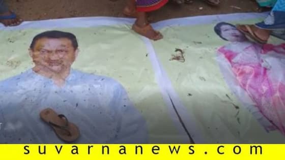 ಉತ್ತರ ಕನ್ನಡ ಸಂಸದ ಅನಂತ್ ಕುಮಾರ್ ಹೆಗಡೆ ಮತ್ತು ಕಾರವಾರದ ಶಾಸಕಿ ರೂಪಾಲಿ ನಾಯ್ಕ್ ಅವರ ಭಾವಚಿತ್ರಕ್ಕೆ ಚಪ್ಪಲಿಯಿಂದ ಹೊಡೆದು ಪ್ರತಿಭಟನಾಕಾರರು ಆಕ್ರೋಶ ವ್ಯಕ್ತಪಡಿಸಿದರು.