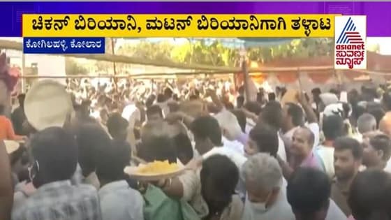 ಬರೋಬ್ಬರಿ ಒಂದು ಸಾವಿರ ಕೆಜಿ ಚಿಕನ್ ಮತ್ತು ಮಟನ್ ಸಿದ್ಧಮಾಡಲಾಗಿತ್ತು. ಬಿರಿಯಾಣಿ ತಿನ್ನೋದಕ್ಕೆ ಜನ ಹೇಗೆ ಮುಗಿಬಿದ್ರು ನೀವೇ ನೋಡಿ