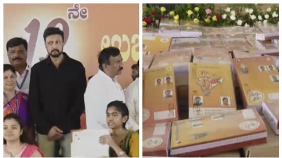ಬೆಂಗಳೂರಿನ ರಕ್ಷಾ ಫೌಂಡೇಶನ್ ವತಿಯಿಂದ ಇಂದು ಶಾಲಾ ಮಕ್ಕಳಿಗೆ ನೋಟ್ ಬುಕ್ ವಿತರಣೆ(Notebook distribution) ಕಾರ್ಯಕ್ರಮ ನಡೆಸಲಾಯಿತು. ಜಯನಗರ ಶಾಸಕ ಕೆ.ಸಿ ರಾಮಮೂರ್ತಿ(MLA KC Ramamurthy) ಸ್ಥಾಪನೆಯ ರಕ್ಷಾ ಫೌಂಡೇಶನ್ (Raksha Foundation) ಬಡ ವಿದ್ಯಾರ್ಥಿಗಳಿಗೆ ಪೋತ್ಸಾಹ ನೀಡುವ ನಿಟ್ಟಿನಲ್ಲಿ 12 ವರ್ಷಗಳಿಂದ ಪ್ರತಿಭಾ ಪುರಸ್ಕಾರ ಹಾಗೂ ನೋಟ್ ಬುಕ್ ವಿತರಣೆ ಕಾರ್ಯಕ್ರಮ ಮಾಡಿಕೊಂಡು ಬಂದಿದ್ದು, ಈ ವರ್ಷ ಬೆಂಗಳೂರು ಸೇರಿದಂತೆ ಅಕ್ಕ ಪಕ್ಕದ ಹಲವು ಜಿಲ್ಲೆಗಳ ಸರ್ಕಾರಿ ಶಾಲೆ ವಿದ್ಯಾರ್ಥಿಗಳಿಗೆ ಉಚಿತ ನೋಟ್ ಬುಕ್ ನೀಡಲಾಯಿತು. ಗಂಗಾವತಿ, ಆನೇಕಲ್ ,ಮಧುಗಿರಿ, ತುಮಕೂರು ಸೇರಿದಂತೆ ಹಲವು ಜಿಲ್ಲೆಗಳಿಗೂ ಸಹ ನೋಟ್ ಬುಕ್ ವಿತರಣೆ ಮಾಡಲಾಗುತ್ತಿದ್ದು, ಈ ಮೂಲಕ ಬಡ ವಿದ್ಯಾರ್ಥಿಗಳ ಶಿಕ್ಷಣಕ್ಕೆ ಸಹಾಯ ಮಾಡುವ ಉದ್ದೇಶವನ್ನು ಕಾರ್ಯಕ್ರಮ ಒಳಗೊಂಡಿದೆ ಎಂದು ಜಯನಗರ ಶಾಸಕ ಕೆಸಿ ರಾಮಮೂರ್ತಿ ತಿಳಿಸಿದ್ರು. ಇದೇ ಸಂದರ್ಭದಲ್ಲಿ ಜಯನಗರ ವಿಧಾನ ಸಭಾ ಕ್ಷೇತ್ರದ ನಾಗರಿಕರ ಬಳಕೆಗಾಗಿ ಎರಡು ಉಚಿತ ಆ್ಯಂಬುಲೆನ್ಸ್ ಗಳನ್ನು ಲೋಕಾರ್ಪಣೆ ಮಾಡಲಾಯ್ತು. ಕಾರ್ಯಕ್ರಮದಲ್ಲಿ ನಟ ಸುದೀಪ್(sudeep) ಭಾಗವಹಿಸಿ ಅತ್ಯುತ್ತಮ ಅಂಕ ಪಡೆದ ವಿದ್ಯಾರ್ಥಿಗಳಿಗೆ ಪ್ರತಿಭಾ ಪುರಸ್ಕಾರ ನೀಡಿ ಅಭಿನಂದಿಸಿದ್ರು.