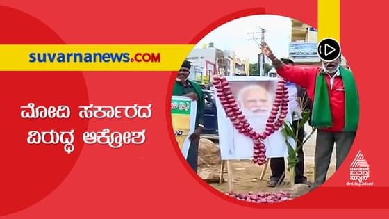 ಭಾರತ್ ಬಂದ್: ಪ್ರಧಾನಿ ಮೋದಿ ಭಾವಚಿತ್ರಕ್ಕೆ ಈರುಳ್ಳಿ ಹಾರ ಹಾಕಿ ಪ್ರತಿಭಟನೆ