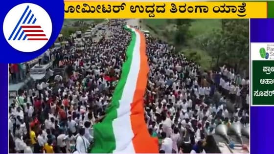 ಕಲಘಟಗಿ ಪಟ್ಟಣದಲ್ಲಿ 9 ಕಿಮೀ ಉದ್ದದ, 9 ಅಡಿ ಅಗಲದ ತ್ರಿವರ್ಣ ಧ್ವಜದ ಜಾಥಾ, ಸಂತೋಷ್ ಲಾಡ್ ರಿಂದ ಚಾಲನೆ