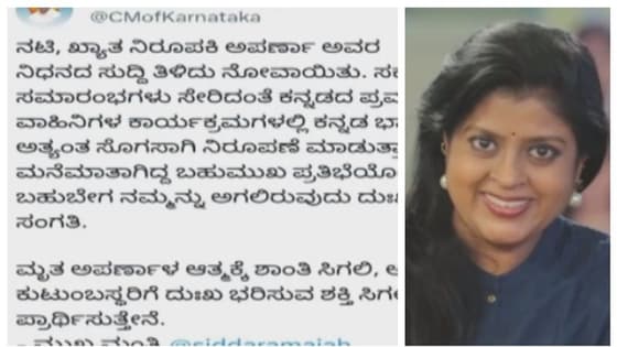 ನಿರೂಪಕಿ ಅಪರ್ಣಾ ನಿಧನಕ್ಕೆ ಸಿಎಂ, ಡಿಸಿಎಂ ಸಂತಾಪ: ಇವರ ನಿಧನ ಕಲಾ ಲೋಕಕ್ಕೆ ತುಂಬಲಾರದ ನಷ್ಟ-ಡಿಸಿಎಂ